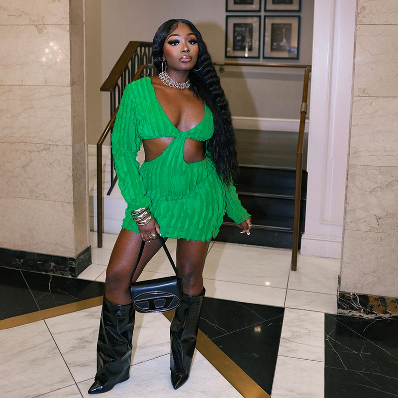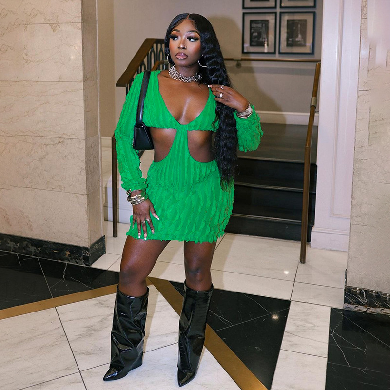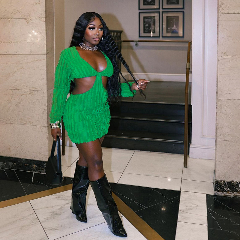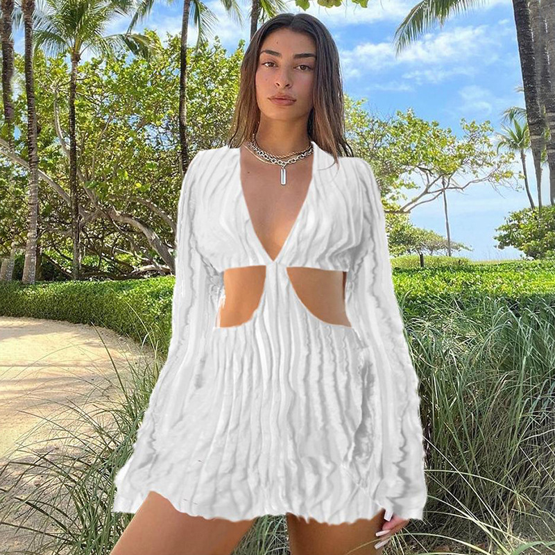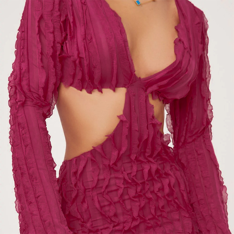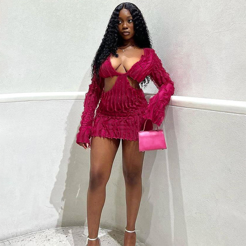 F5026 Cross-Border European and American Style Women's Clothing 2023 Autumn New Amazon Fashion Mesh Wave Pattern Sexy Sheath Dress