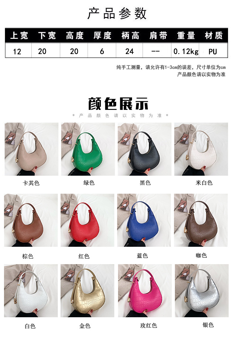 F7020 Women's Bag 2023 Fashion French Minority Women's Bag Fashion Textured Crocodile Pattern Multi-Color Shoulder Underarm Bag Wholesale