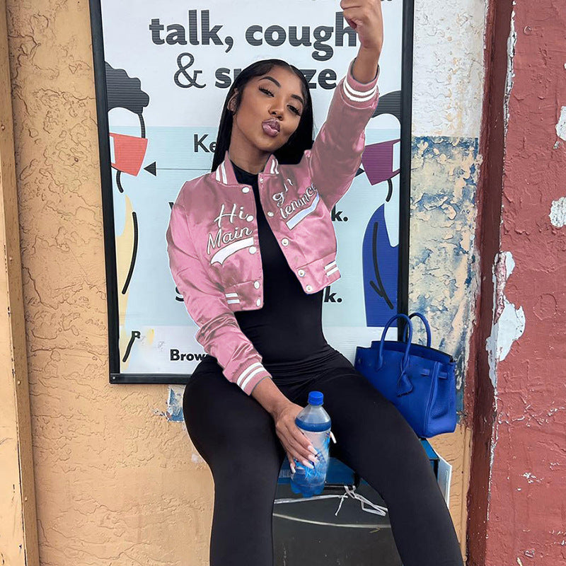 F5032 2023 Cross-Border Foreign Trade New Autumn Women's Clothing Fashion Letter Embroidery Slim Fit Casual Short Coat